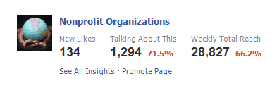 The last week of September I noticed that the Reach on that status updates that I posted on the Nonprofit Organizations Facebook Page had dropped significantly. As far as I can guess, on average only about 6-9% of my fans now get my status updates posted to their News Feed which is about half the 16% that Facebook announced in March. And with the exception of buying advertising, there?s very little you can do to expand your Reach organically more than 3-5%. Facebook has confirmed this change, but as usual the specifics are shrouded in mystery so deciphering?any absolutes about how the change affect all pages is impossible. That said, here?s some recent data from the Nonprofit Organizations Facebook Page: